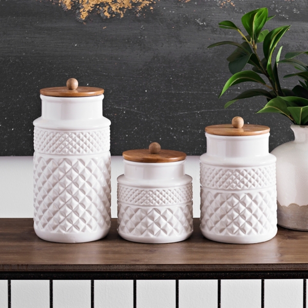 Set of 3 chic colorful ceramic kitchen canister set with bamboo lids. Set of 3 kitchen storage canisters tea coffee sugar jars pots containers caddy. Are you interested in red ceramic kitchen canisters? Food safe materials, with tightly fitting lids to keep bugs this canister set is perfect for your shabby chic, cottage or country kitchen. $26.60 usd at time of publication buy from amazon.